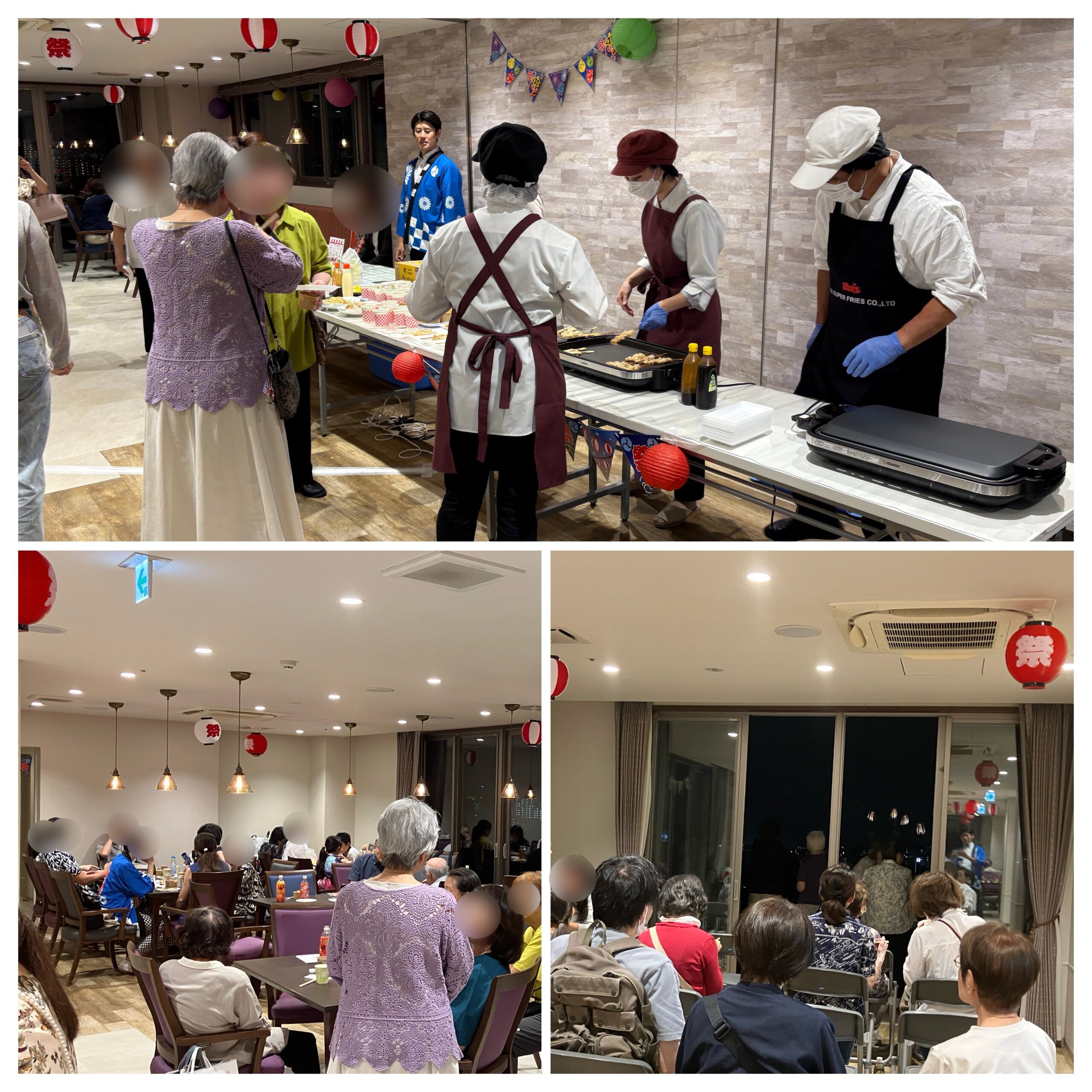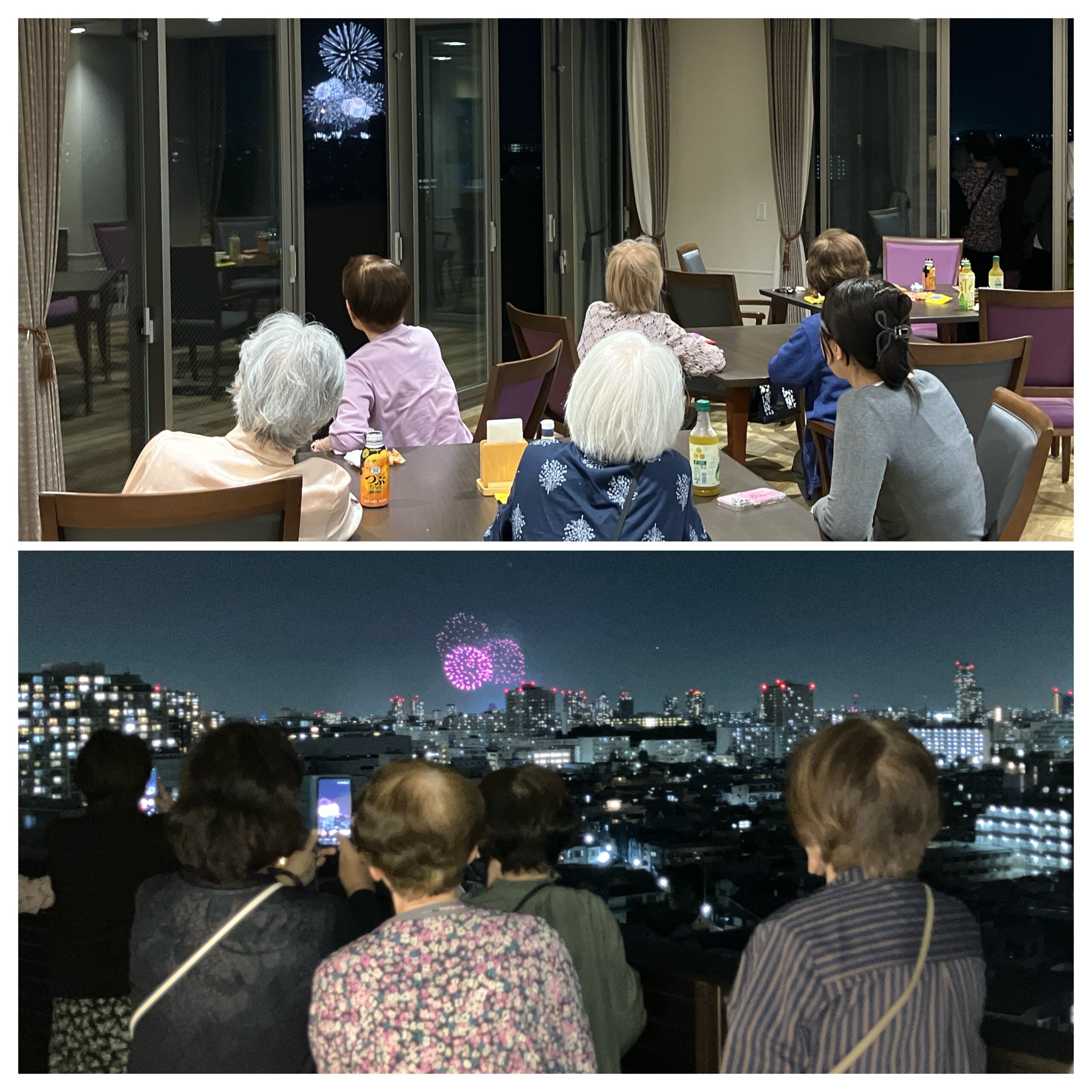 グランドマスト板橋本蓮沼最大の魅力である13階に食堂ラウンジを生かし北区花火大会に併せて納涼祭と鑑賞会を開催しました。 参加された入居者様…