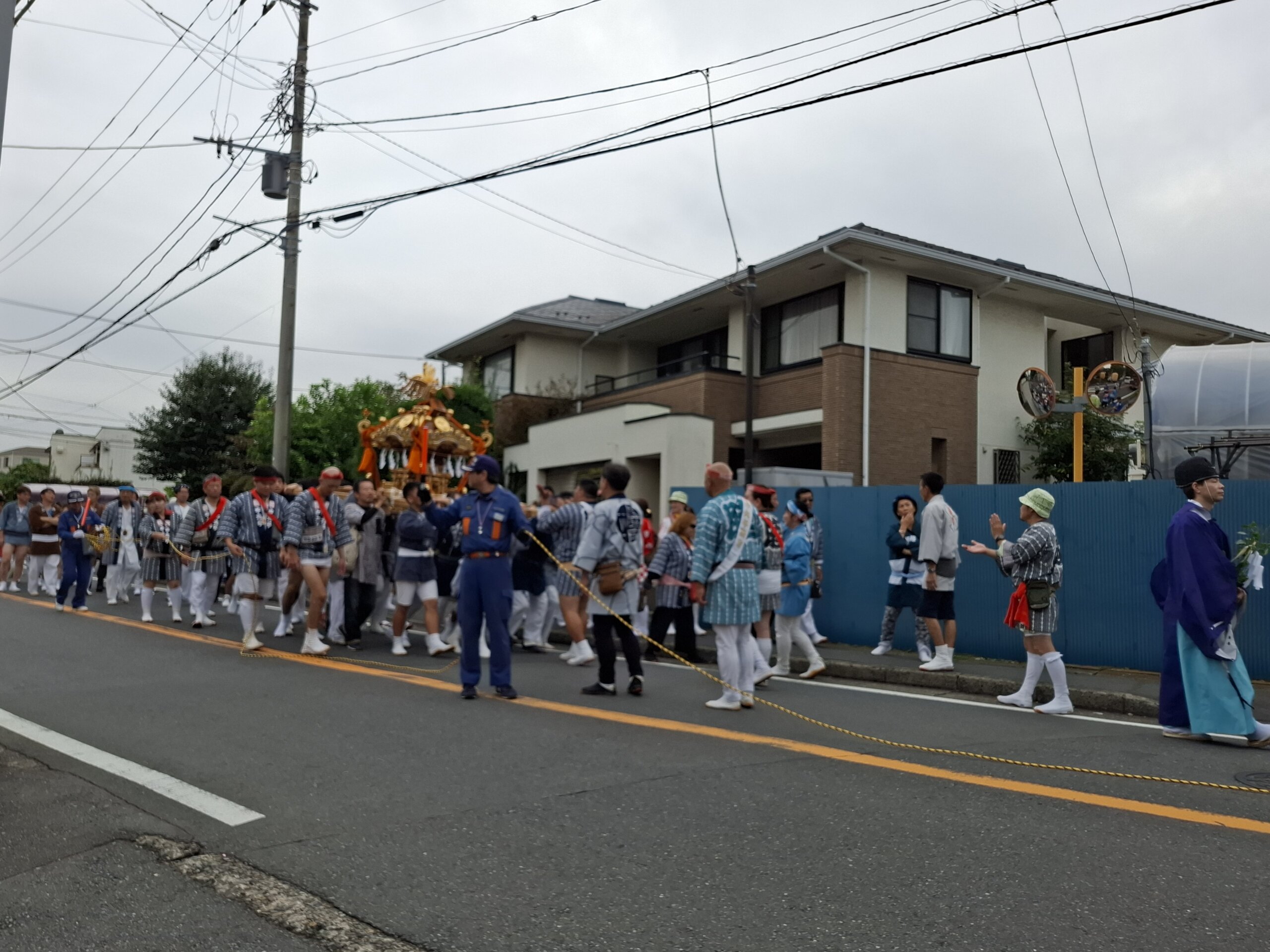 歩いてすぐの中丸子神社の秋季例大祭。 施設前の道路を神輿が通り活気にあふれていました