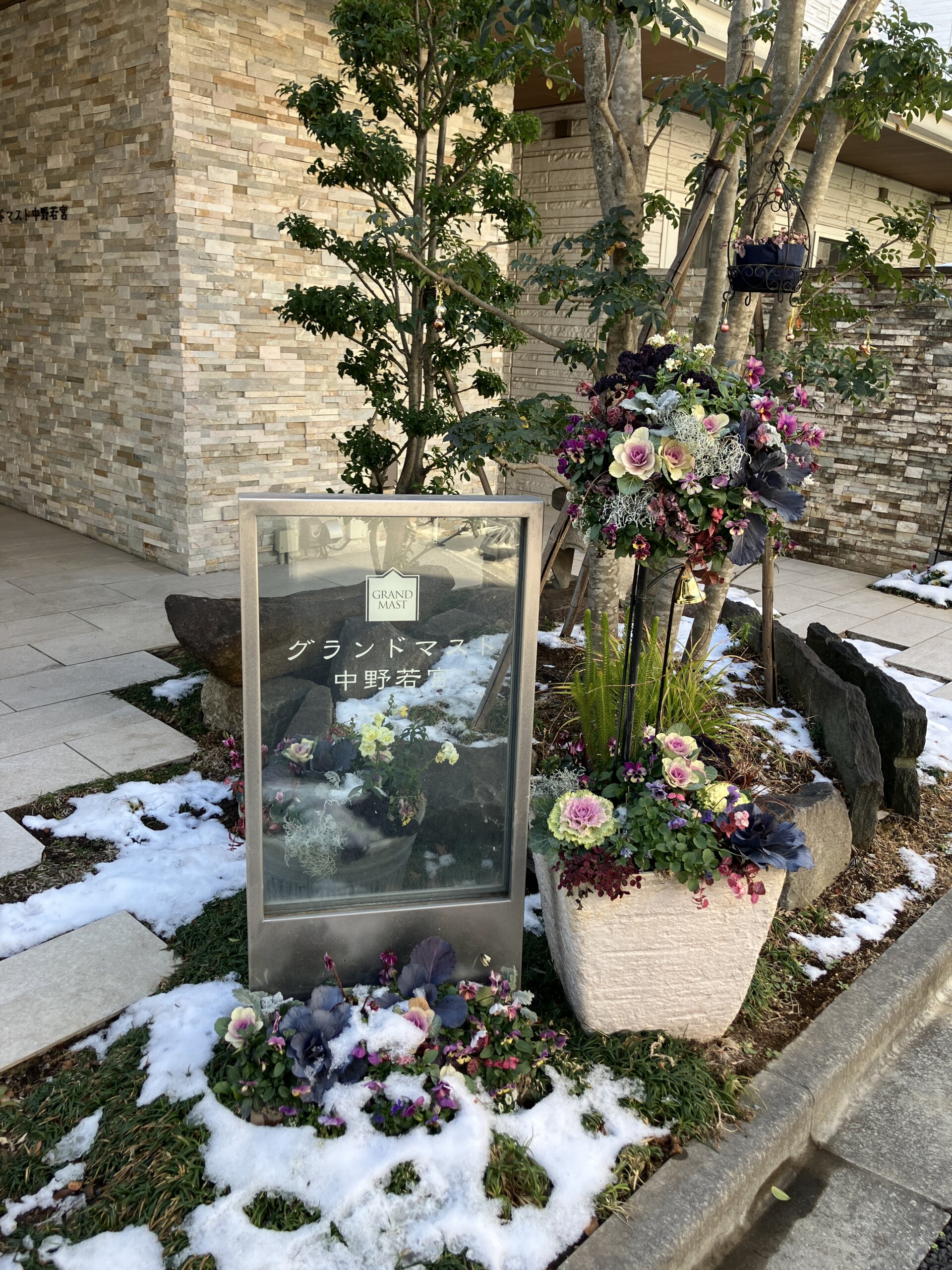 武蔵小杉石水邸前のエントランス入り口にひっそりと 太陽のもと元気に咲いています。