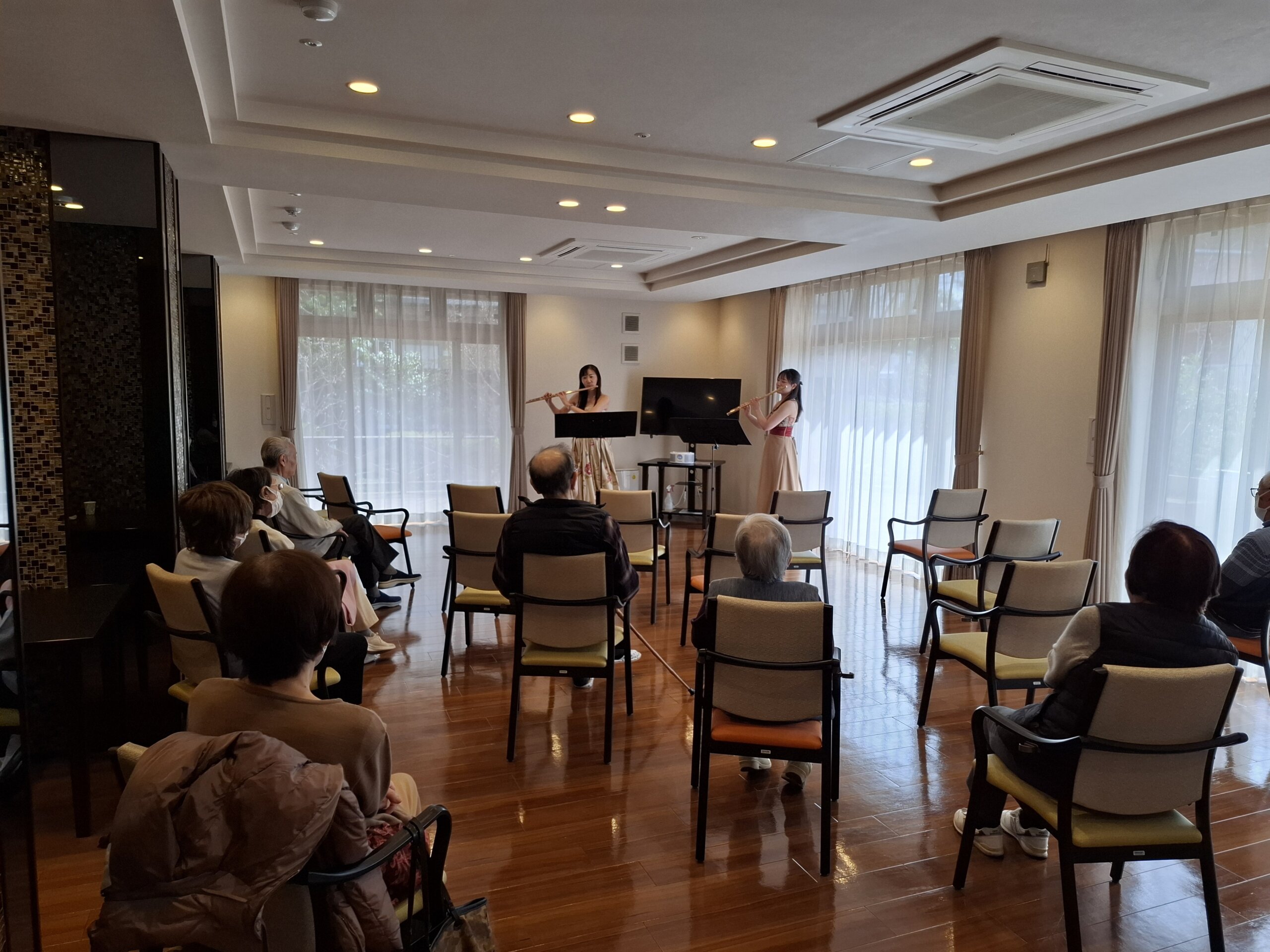 先日、グランドマストひばりが丘南で音楽演奏会を開催いたしました。 入居者様も久々のイベント開催にとても喜んでいただきました。 写真は…